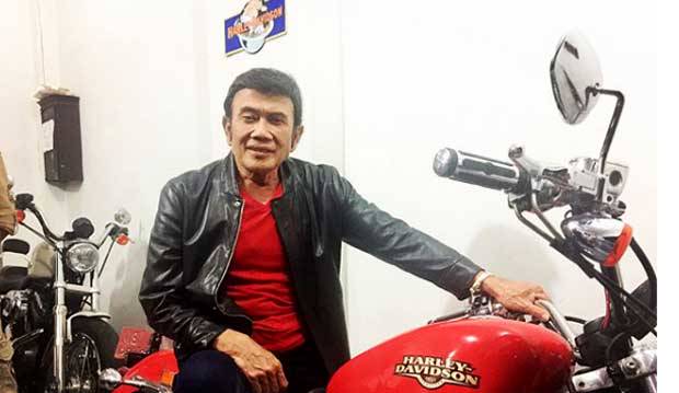 Rhoma langsung memilih Harley Davidson ukuran sedang berwarna merah, dan langsung berpose di motor besar itu.