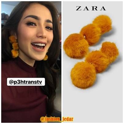 9. Hobi pakai aksesori mencolok, anting pompom cokelat ini harganya Rp 200 ribu-an saja lho, guys