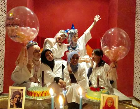 Kejutan dari para sahabat istri dan mantan istri Emran ini berlangsung dengan seru di sebuah spa. Dua kue ulang tahun dan balon-balon cantik menghias lokasi surprise tersebut.