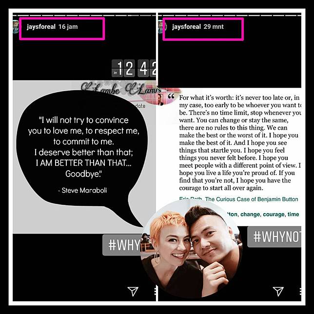 "I will not try to convince you to love me, to respect me, to commit me, I deserve better than that; I am better than that, googbye - Steve Maraboli," kalimat yang tertulis di gambar yang diunggah di insta story Wijaya.