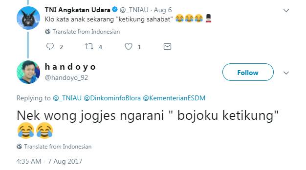 Setelah balasan lucu admin twitter @_TNIAU, tak disangka-sangka admin pemerintah lainnya saling berbalas pesan dan membuat kelucuan. Penasaran? Coba cek deh, kamu pasti akan ketawa!