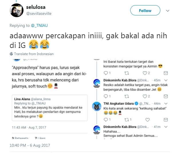 Banyak dari kamu tahu bahwa admin twitter @_TNIAU sering sekali melempar candaan lucu kepada followernya. Tetapi, kali ini satu followernya memancing pertanyaan lucu tentang pendaratan ke hati agar tepat sasaran apa yang harus dilakukan.