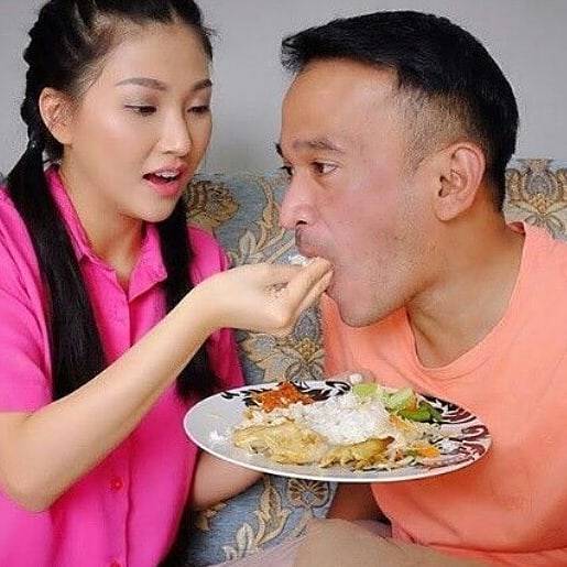 1. Duh romantisnya, Sarwendah saat menyuapi Ruben Onsu makan.