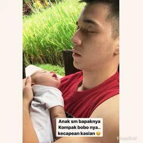 Sejak Lucio lahir, Stefan selalu ikut serta mengurus bayinya seperti memandikan, menggendong, bahkan menidurkan. Seperti foto di atas, Lucio tampak tertidur pulas di pelukan sang ayah. Lucunya, Stefan ikut tertidur dengan bersandar di kursi. Momen ini langsung menarik perhatian Celine dan kemudian diabadikan dengan kamera. O nov/berbagai sumber