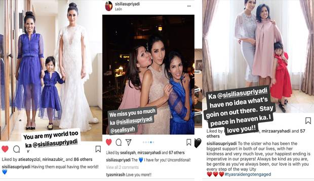 “Ka Sisilia Supriyadi, have no idea what’s goin on out there. Stay peace in heaven kak. I love you. We miss you so much kak, you are my world too,” tulis Tyas seraya bagikan potret kebersamaan saat mendiang Sisilia masih hidup.