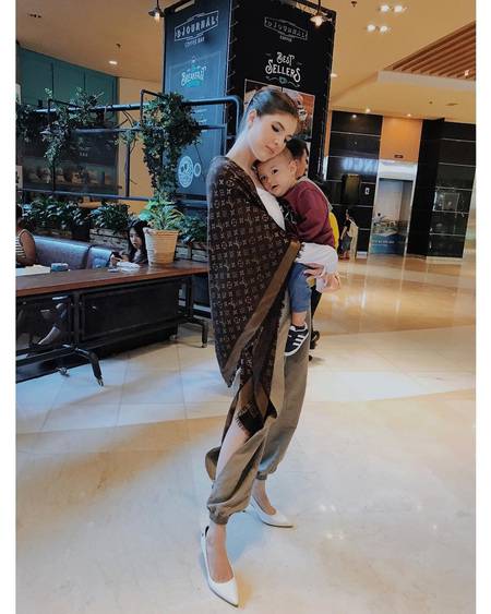 Lihat saja bagaimana gayanya kala sedang mengasuh sang putra tercinta. Nggak nyangka deh ya kalau dia sudah berstatus jadi seorang ibu?