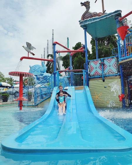 Menghabiskan momen seru bersama, Mikaila juga sempat memamerkan foto kala ia bermain air bersama putra mungilnya.