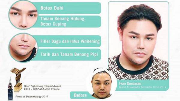Dilihat dari foto sebelum dan sesudah menjalani perawatan, kini wajah Ivan Gunawan terlihat lebih tirus, hidungnya lebih mancung, serta kulit wajah yang cerah.
