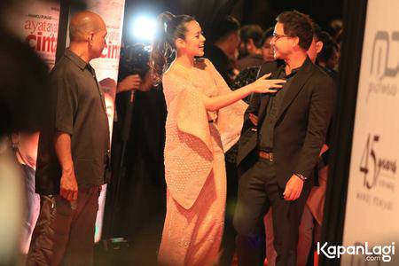 Selain memamerkan kemesraan, saat berada di atas karpet merah para artis juga menunjukkan gaya glamor mereka. Sama seperti pelantun lagu Serba Salah ini yang tampil begitu mempesona dengan make-up flawless.