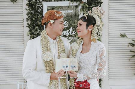 Rasti tampil cantik dengan kebaya putih dan rambut berhias melati dengan adat Jawa. Wajahnya begitu 'manglingi' kalau kata orang Jawa, alias nampak berbeda daripada biasanya. Aura pengantin begitu nyata terasa di wajah Rasti yang berbahagia.