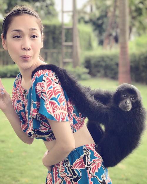 5. Mimik lucu BCL yang tanpa makeup saat gendong monyet.