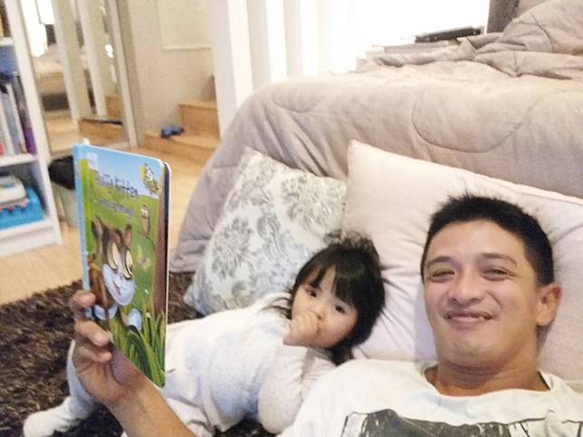 9. Ayah idola, membacakan dongeng dulu buat si cantik Aquilla