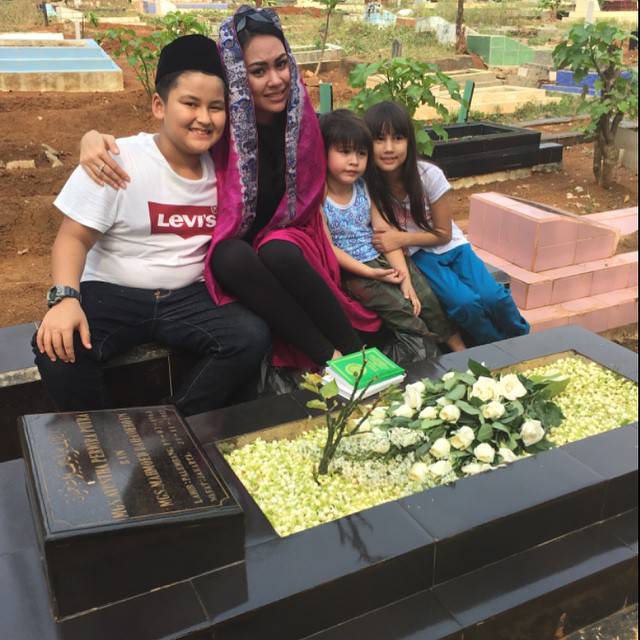 Satu foto lagi yang masih menjadi sorotan netizen untuk menghapusnya adalah saat Kartika Putri mengujungi sebuah makam bersama anak-anak.