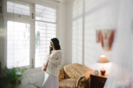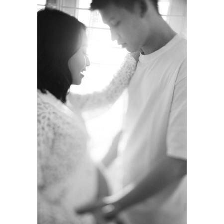 Warna putih dan nuansa rumah menjadi pilihan pemotretan Rinni dan Jevin. Hasilnya, cantik dan romantis.