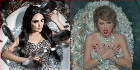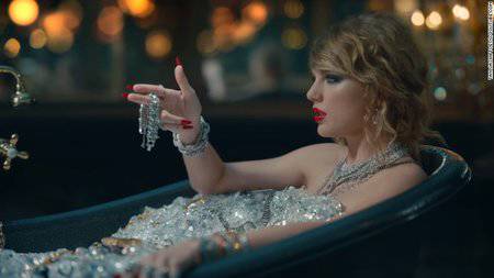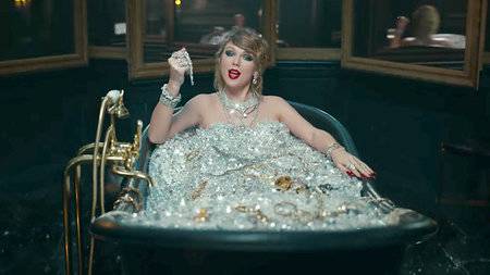 Seperti KD, kala itu, Taylor Swift juga berpose tiduran dalam sebuah bathtub yang berisi banyak sekali diamond.