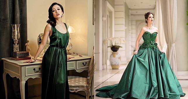 2. Ling-ling tampak cantik dengan dres hijau simpel. Sedangkan Nia Ramadhani bak ratu memakai gaun hijau lebar.