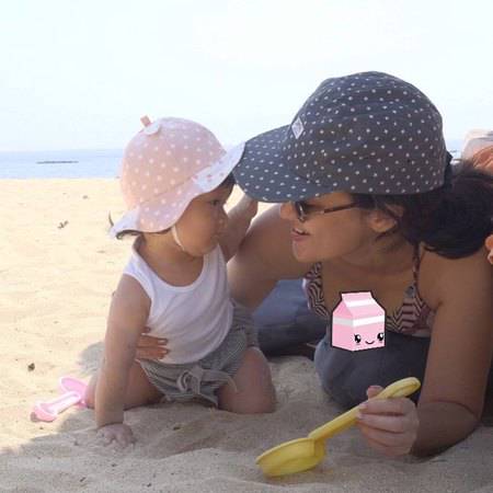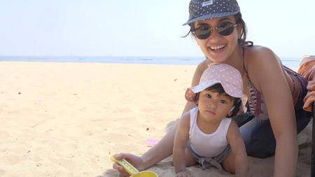 Atiqah dan Rio kompak mengenalkan Baby Sal ke berbagai tempat meski ia masih berusia dini. Berkunjung ke pantai, ia tampak happy bermain pasir.
